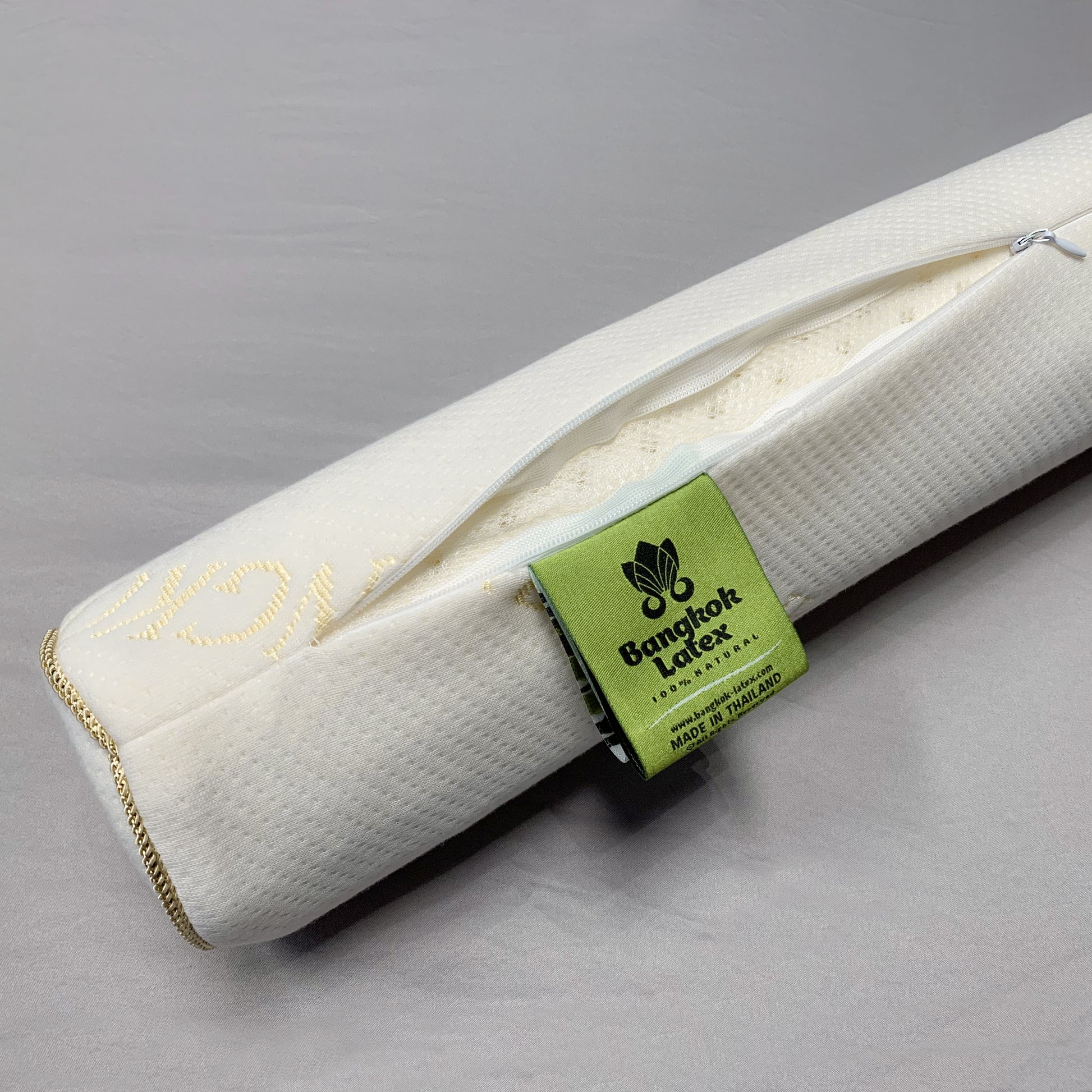 - Crafted from soft, natural latex, this compact bolster offers a simple, flexible design suitable for various home uses.