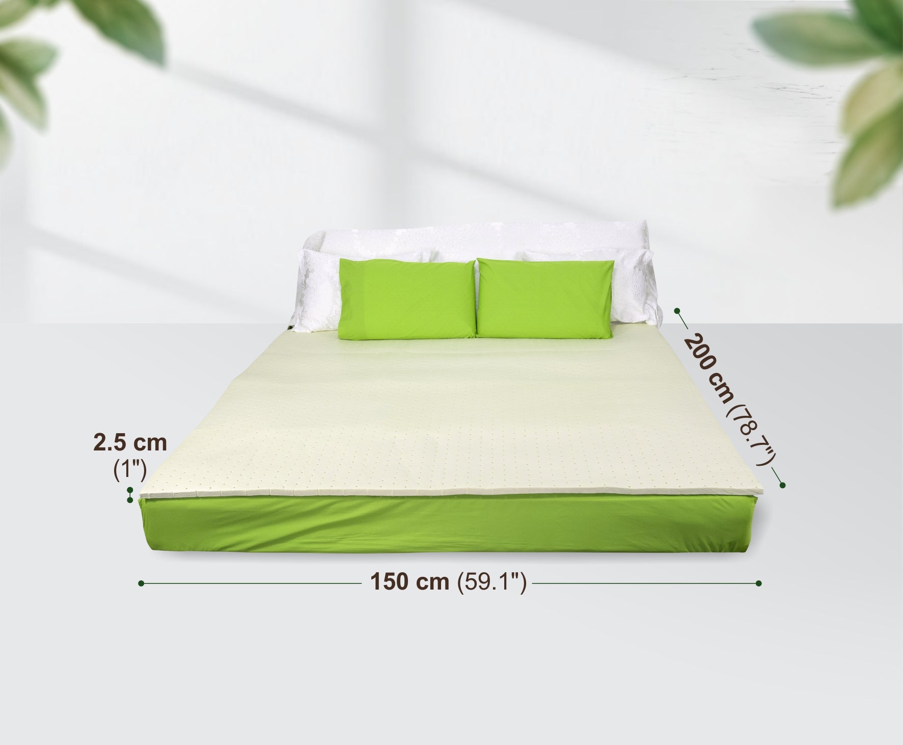 - Made from natural latex, known for its exceptional elasticity, even at just 2.5 cm (1") thick, this natural latex mattress topper dramatically enhances the comfort of your sleep environment, offering a more supportive and pleasant place to rest.