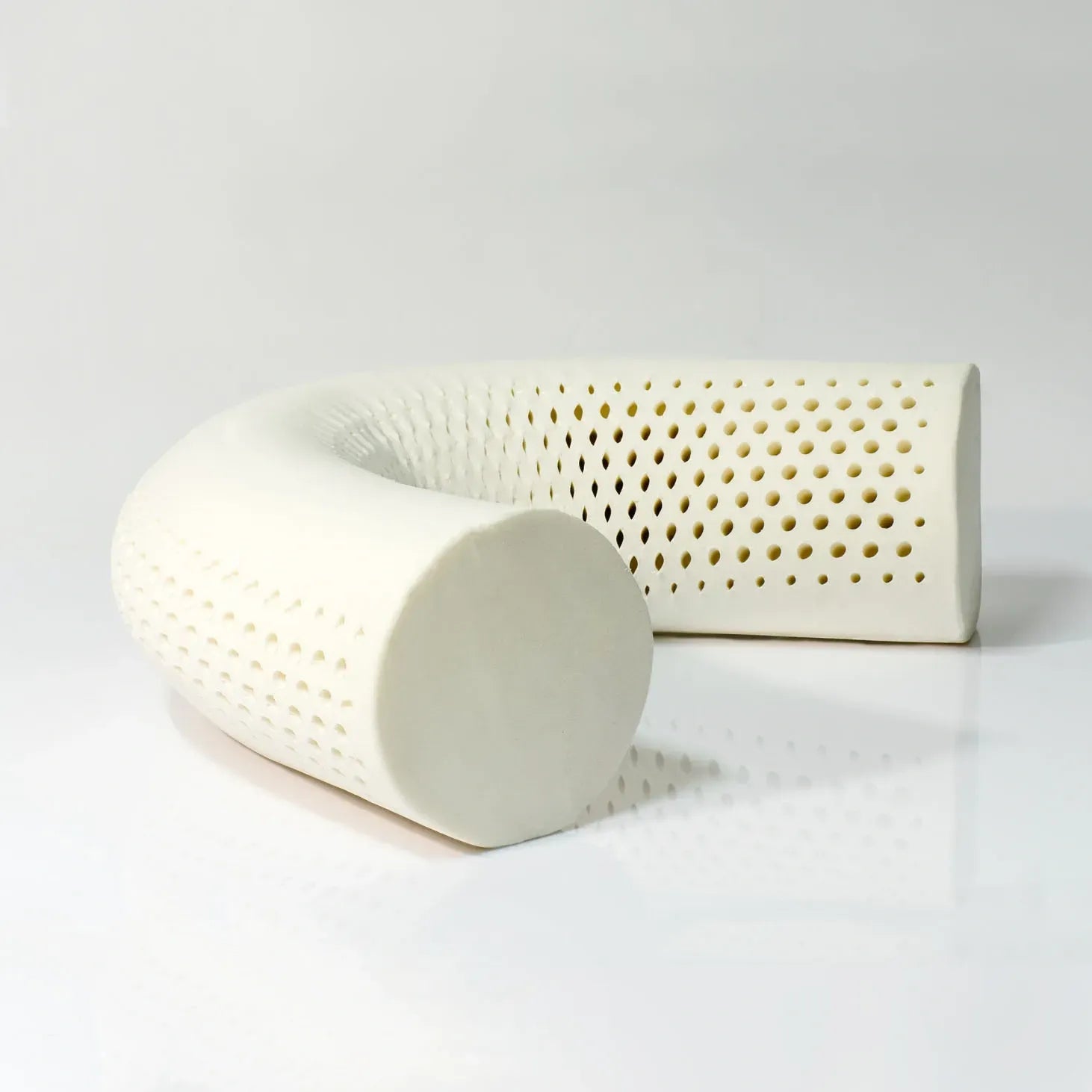 - It retains its shape over time and, like all latex bolsters, stays securely in place on any surface without sliding.