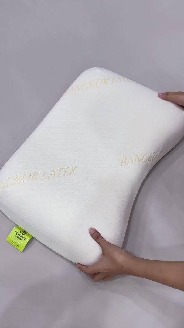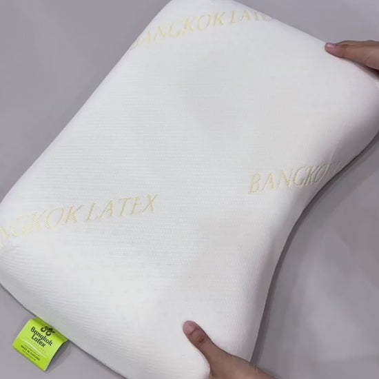 - เมื่อคุณนอนหงาย ศีรษะจะวางสบายในช่องตรงกลาง และเมื่อคุณพลิกตัวไปด้านข้าง ศีรษะจะได้รับการรองรับจากขอบหมอนที่สูงขึ้น